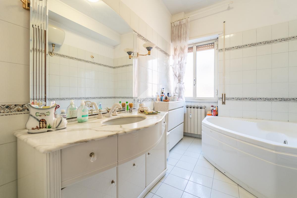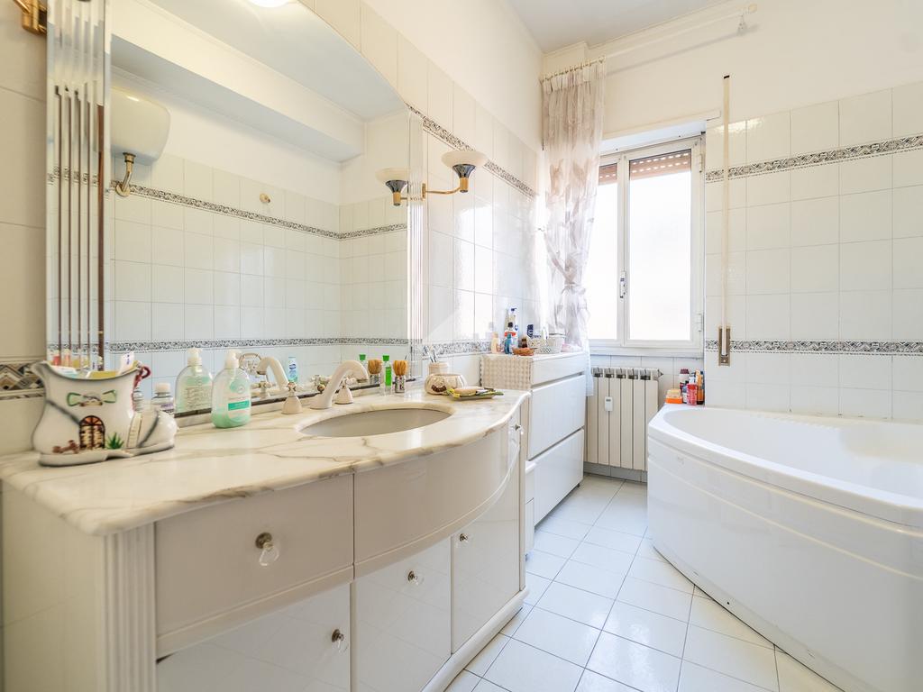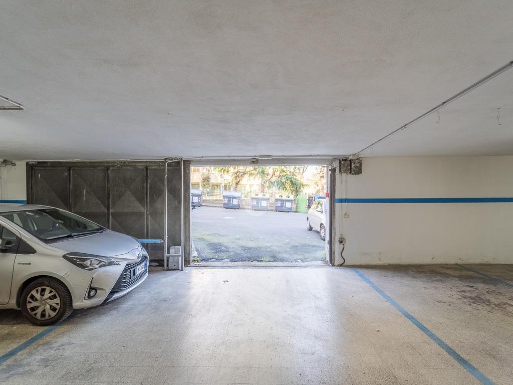 Completano la proprietà una cantina facilmente accessibile tramite ascensore e un posto auto doppio, elemento di grande valore in una via dove il parcheggio è particolarmente difficile.