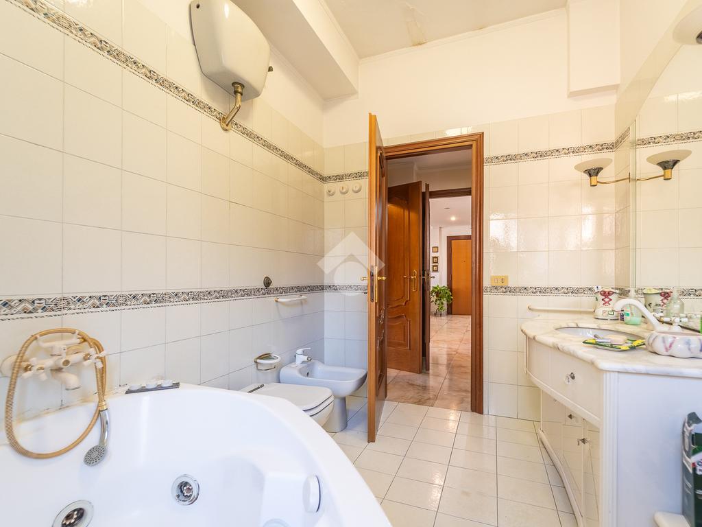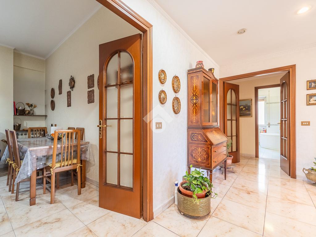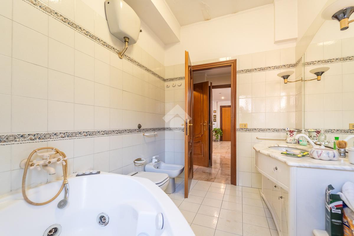 L’attico si compone di: Ingresso, salone doppio con accesso all’ampio terrazzo, due camere matrimoniali, cameretta, cucina abitabile con accesso al balcone verandato, bagno finestrato con vasca, secondo bagno di servizio.