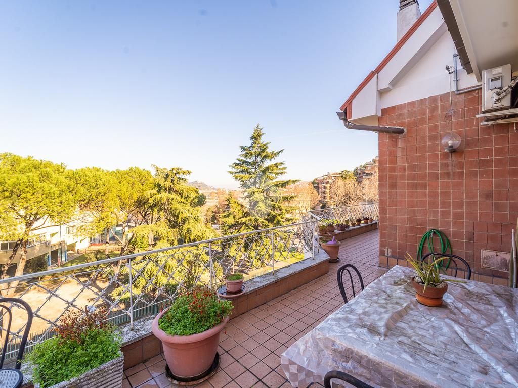 Il terrazzo, con splendida vista aperta sul verde, rappresenta uno spazio ideale per pranzi all’aperto, momenti di relax e convivialità. Il balcone verandato è perfetto come zona lavanderia.